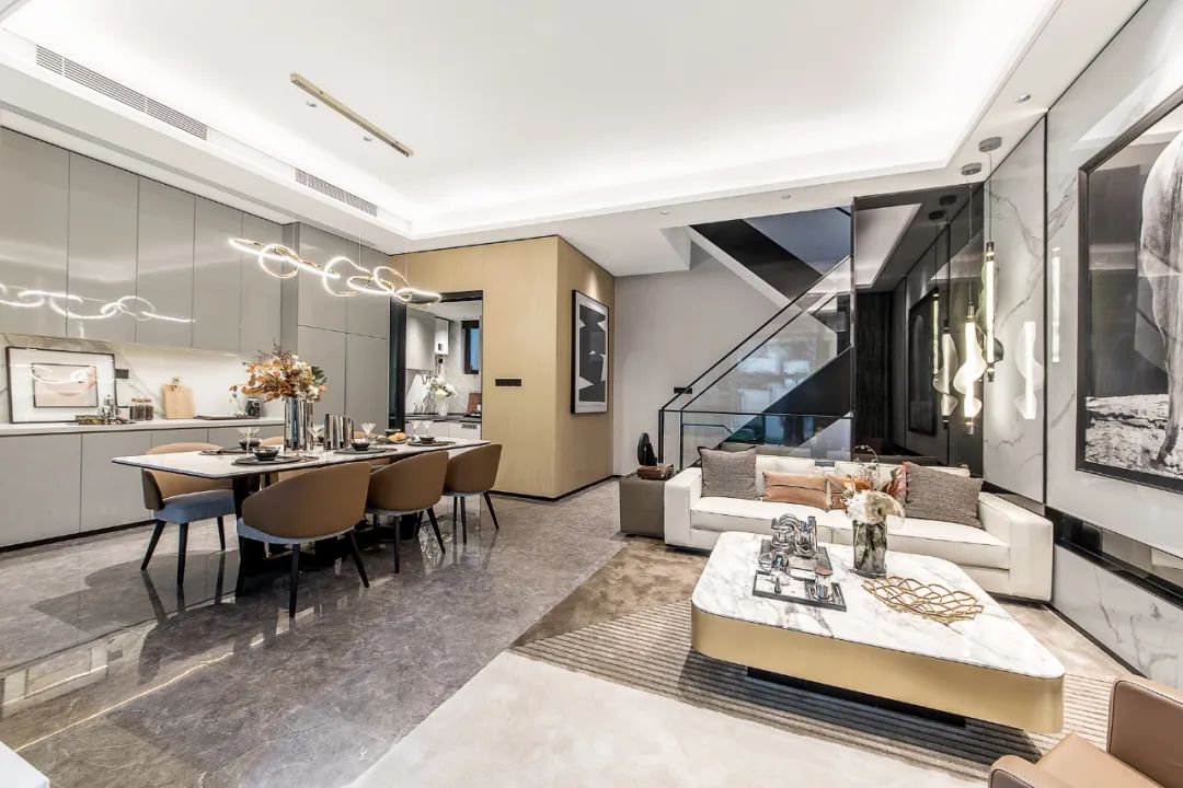 下疊戶型追求以現(xiàn)代色彩的外衣包裹出高級的輕奢感,目的是運用精致的設(shè)計打造全新的“生活品質(zhì)”樣板。創(chuàng)新的設(shè)計思路,凝聚著設(shè)計師的別出心裁,實用而富有美感。
